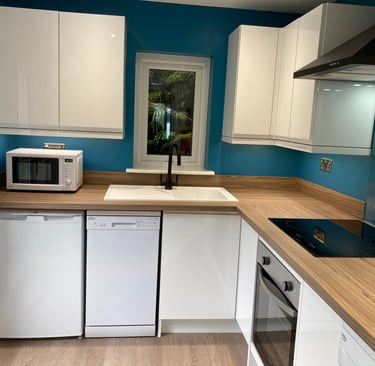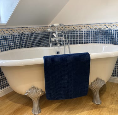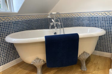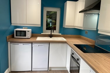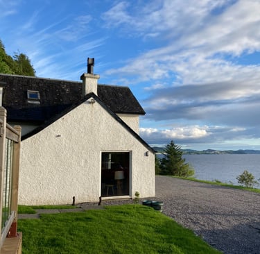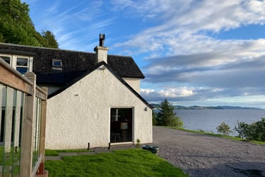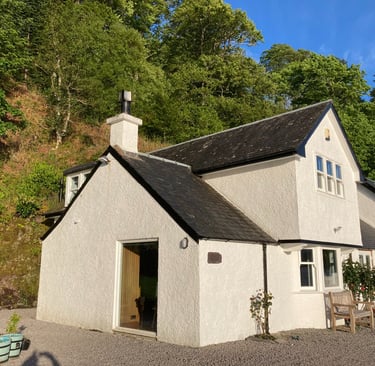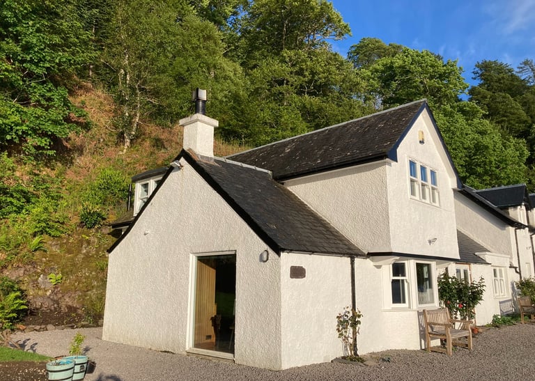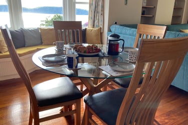 The house features a fully equipped kitchen with modern appliances. In addition to central heating throughout, a log burner in the lounge adds a cosy touch on the colder evenings and a starter log pack is included. The lounge/dining room is a great place to relax with a smart TV, books, and board games. Ample seating is provided by way of a comfortable corner couch and there is dining space for four guests. The two bedrooms, located on the first floor, offer a king size bed in Bedroom 1 and a double bed in Bedroom 2. Hairdryers are provided in both rooms for convenience, and locally sourced complementary toiletries from The Highland Soap Co. are available in the bathroom.